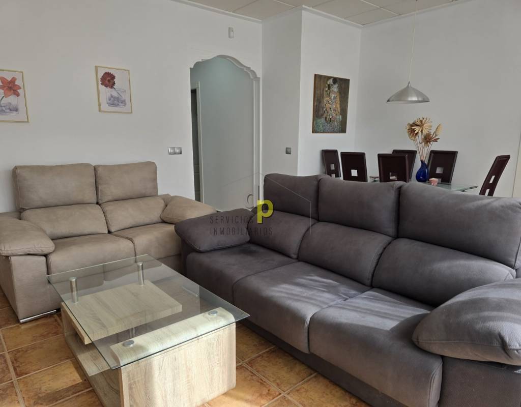 El luminoso salón es el corazón del hogar, con acceso directo a una terraza donde podrás relajarte y disfrutar del clima mediterráneo.